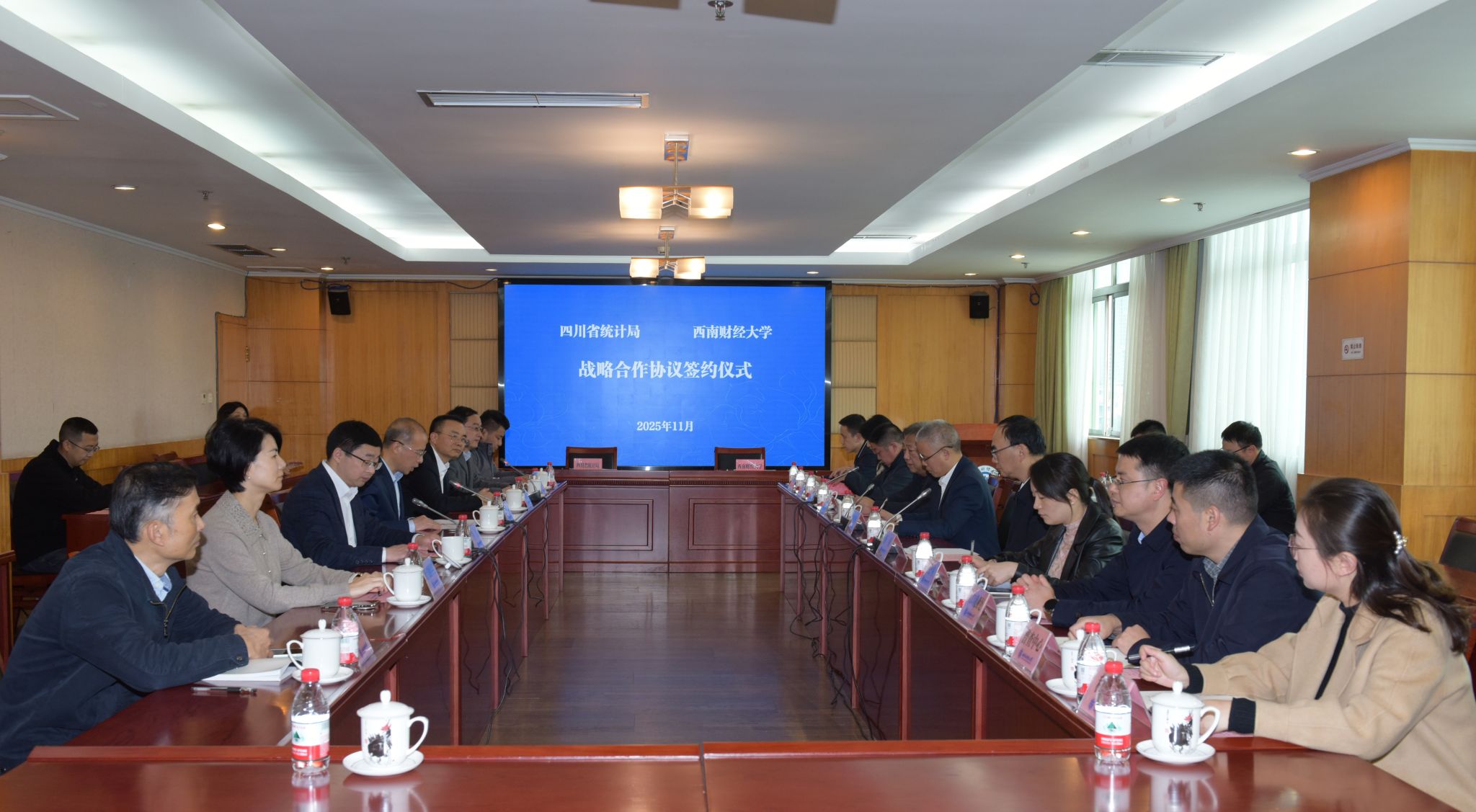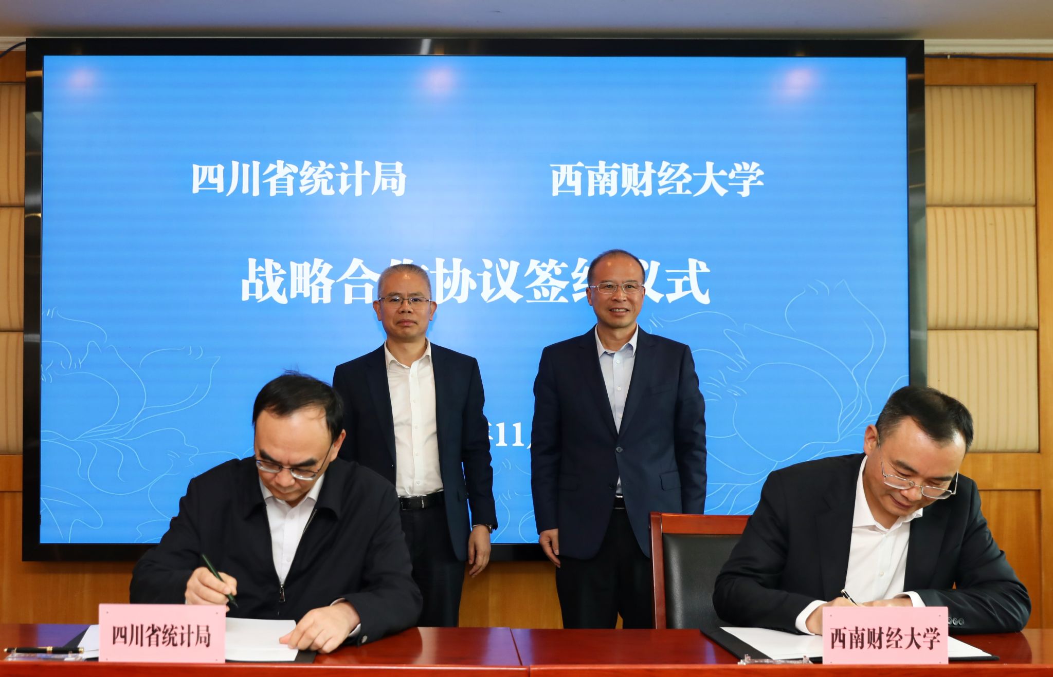11月7日,学校与四川省统计局战略合作协议签约仪式在光华校区举行。四川省统计局党组书记、局长曾俊林,党组成员、副局长蒋勇,人事处处长、二级巡视员王兵;学校党委副书记、校长李永强,党委常委、副校长马永强出席签约仪式。